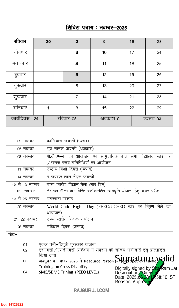 | राज्य के भौतिक एवं प्रशासनिक रूप से समन्वित आंगनबाड़ी केन्द्रों पर 5-06 वर्ष के विद्यार्थियों को लेवल-1 शिक्षक/मेन्टॉर टीचर द्वारा शिक्षण कार्य हेतु दिशा-निर्देशों के सम्बन्ध में। | 04/09/2025 | View |